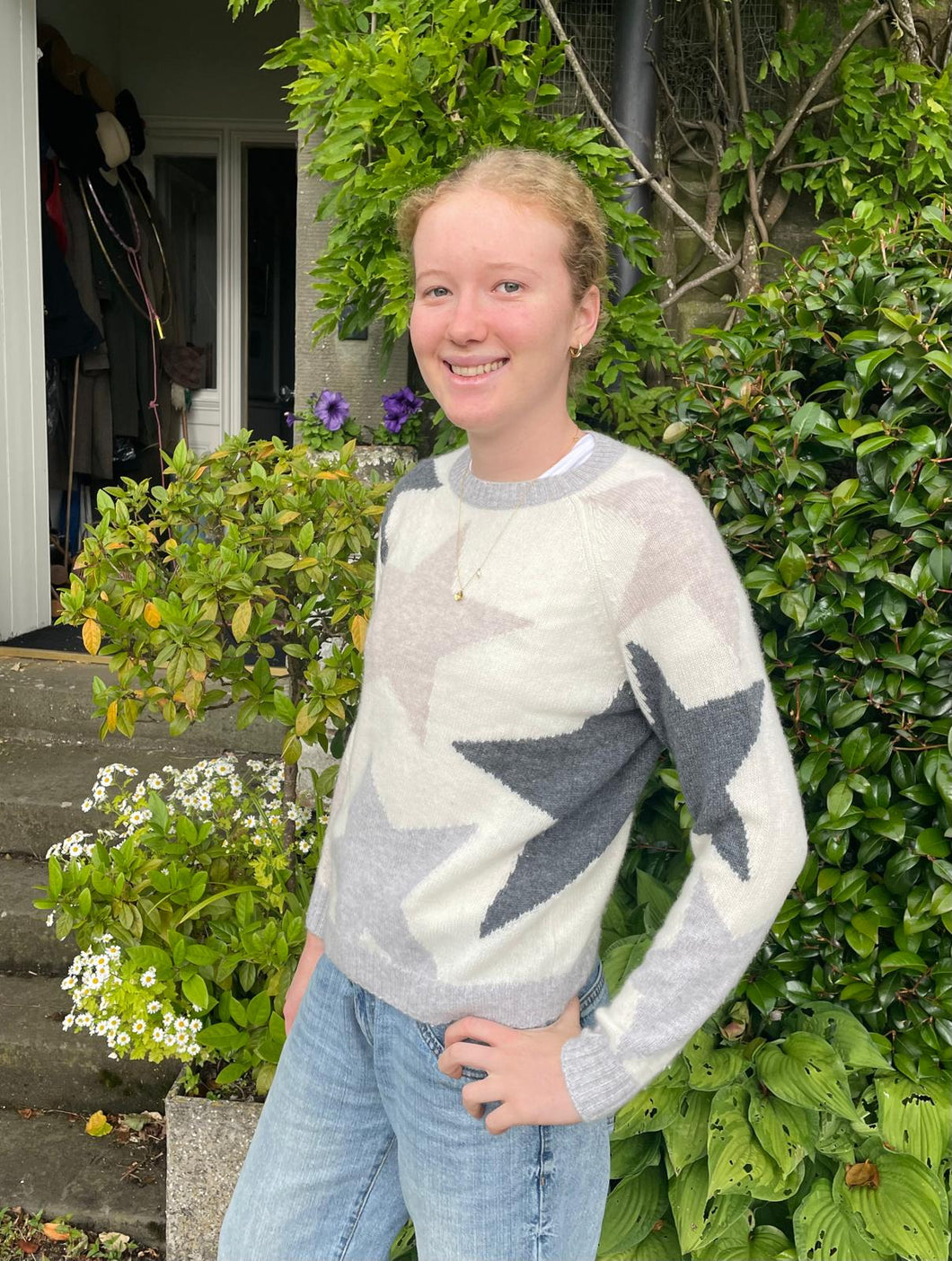Pure crew neck , with stars in charcoal, pale grey and oatmeal, grey ribbing, 38”, M, £45 (very soft!)